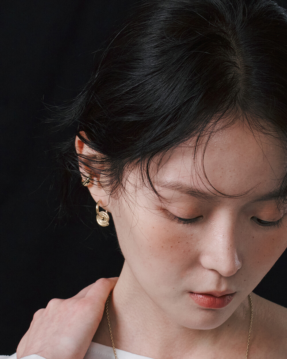 뿔소라 입의 형태를 모티브로 제작한 귀걸이입니다.