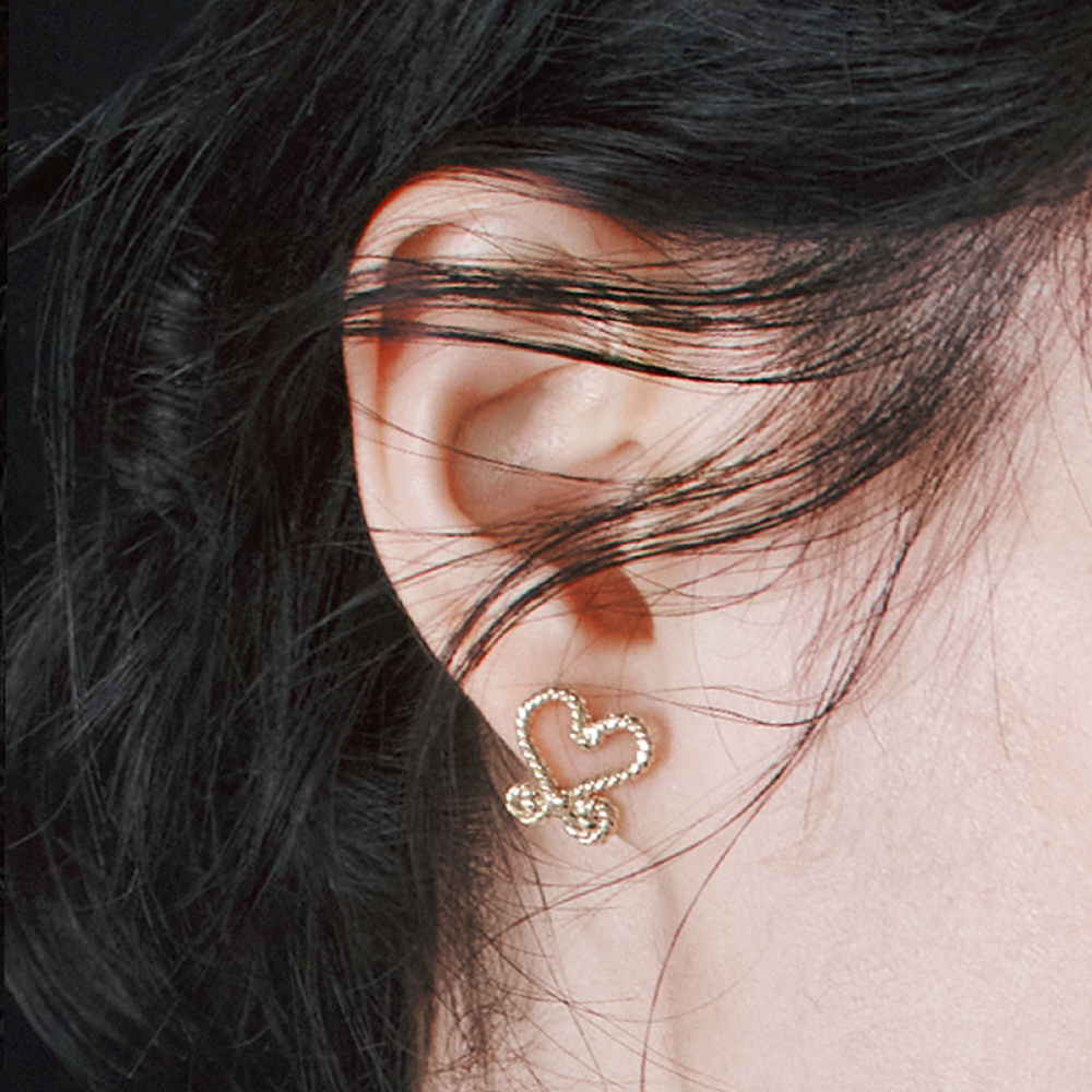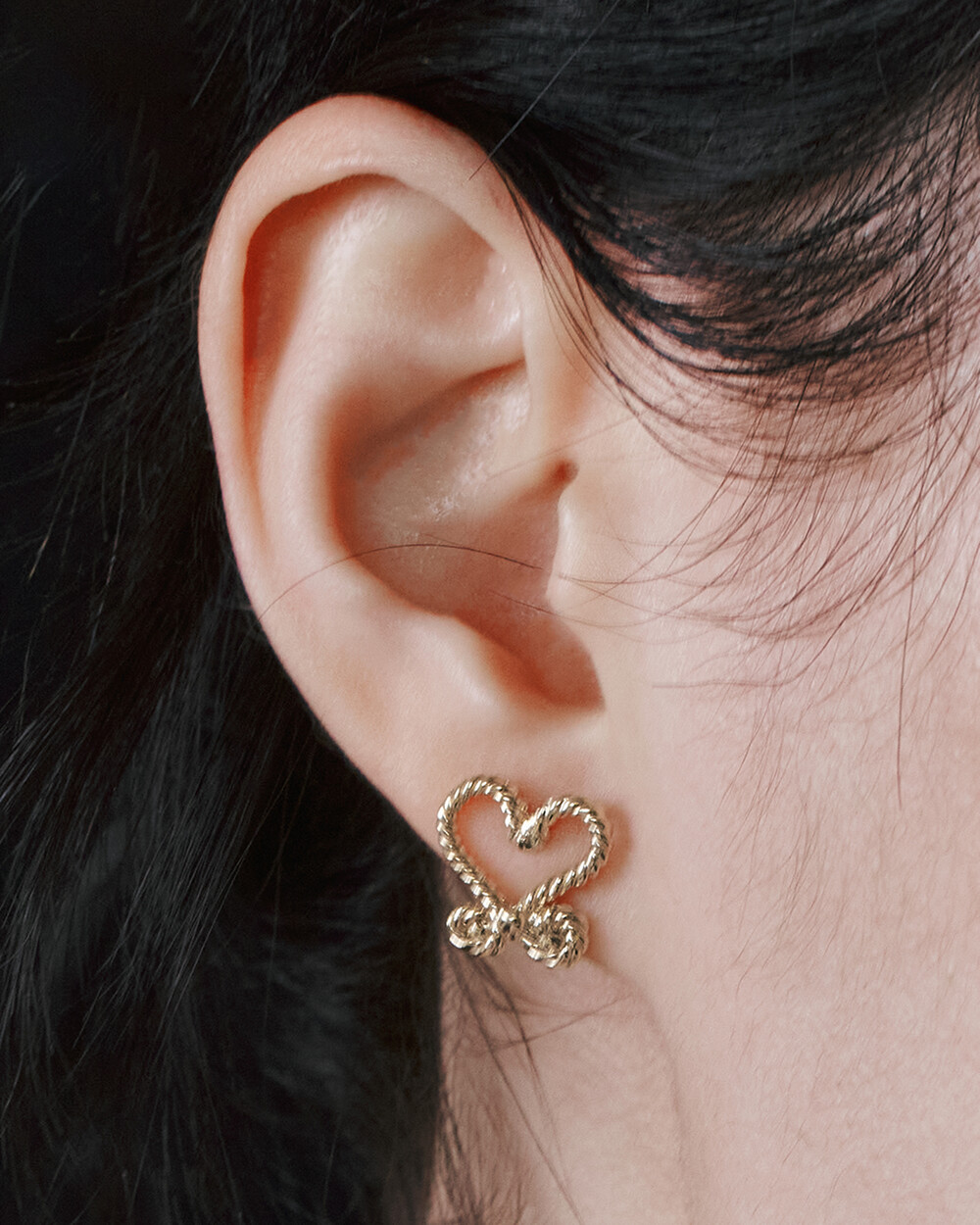 로프 디테일과 하트 모양이 돋보이는 귀걸이입니다.