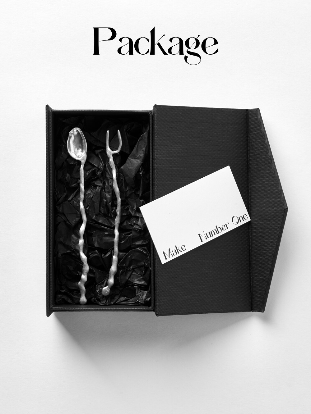 물의 순환을 모티브로 물의 형상을 MNO의 미감으로 표현한 커트러리 입니다.