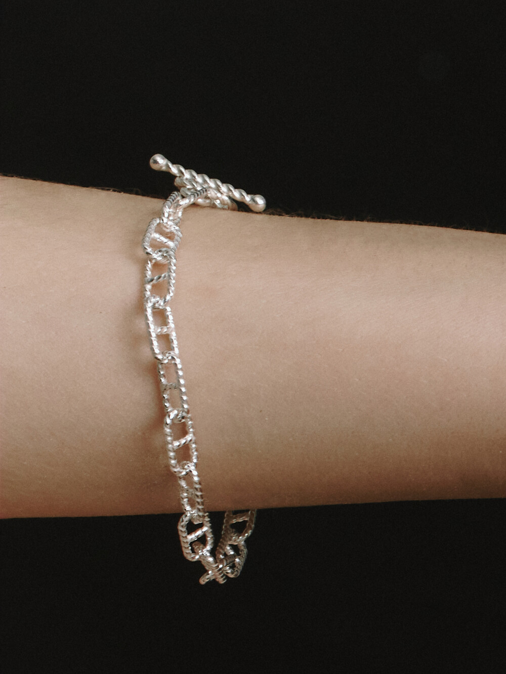 영원히 변하지 않는 밧줄의 강인함과 섬세함을 담은 밧줄 모양 체인과 토클바로 완성되었습니다.