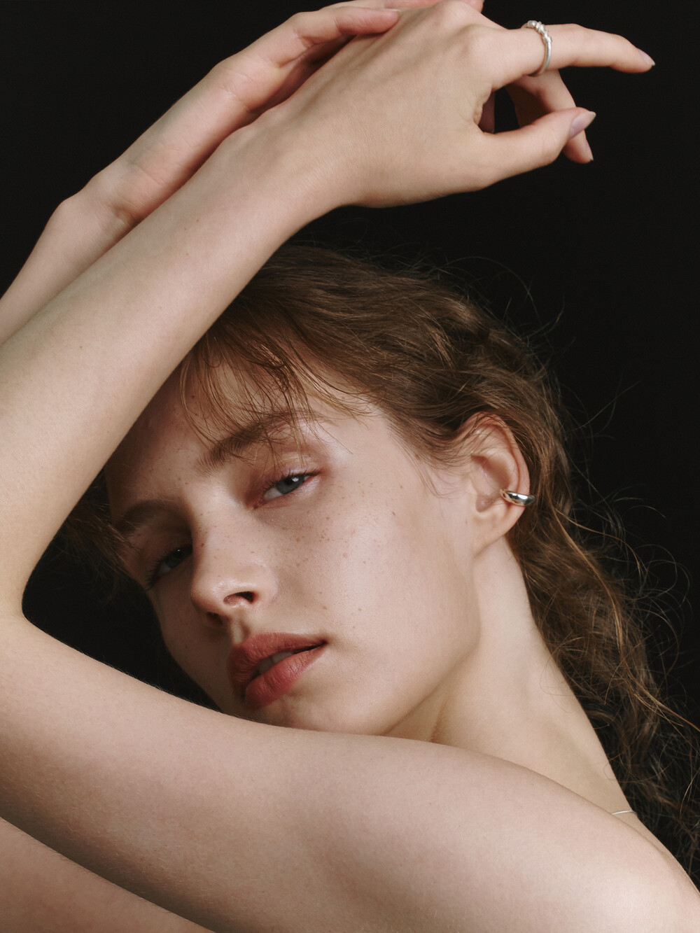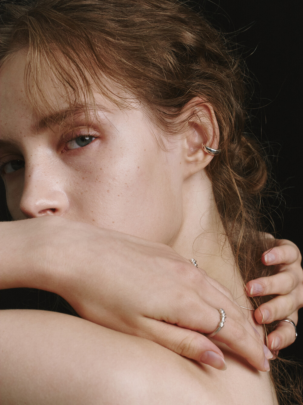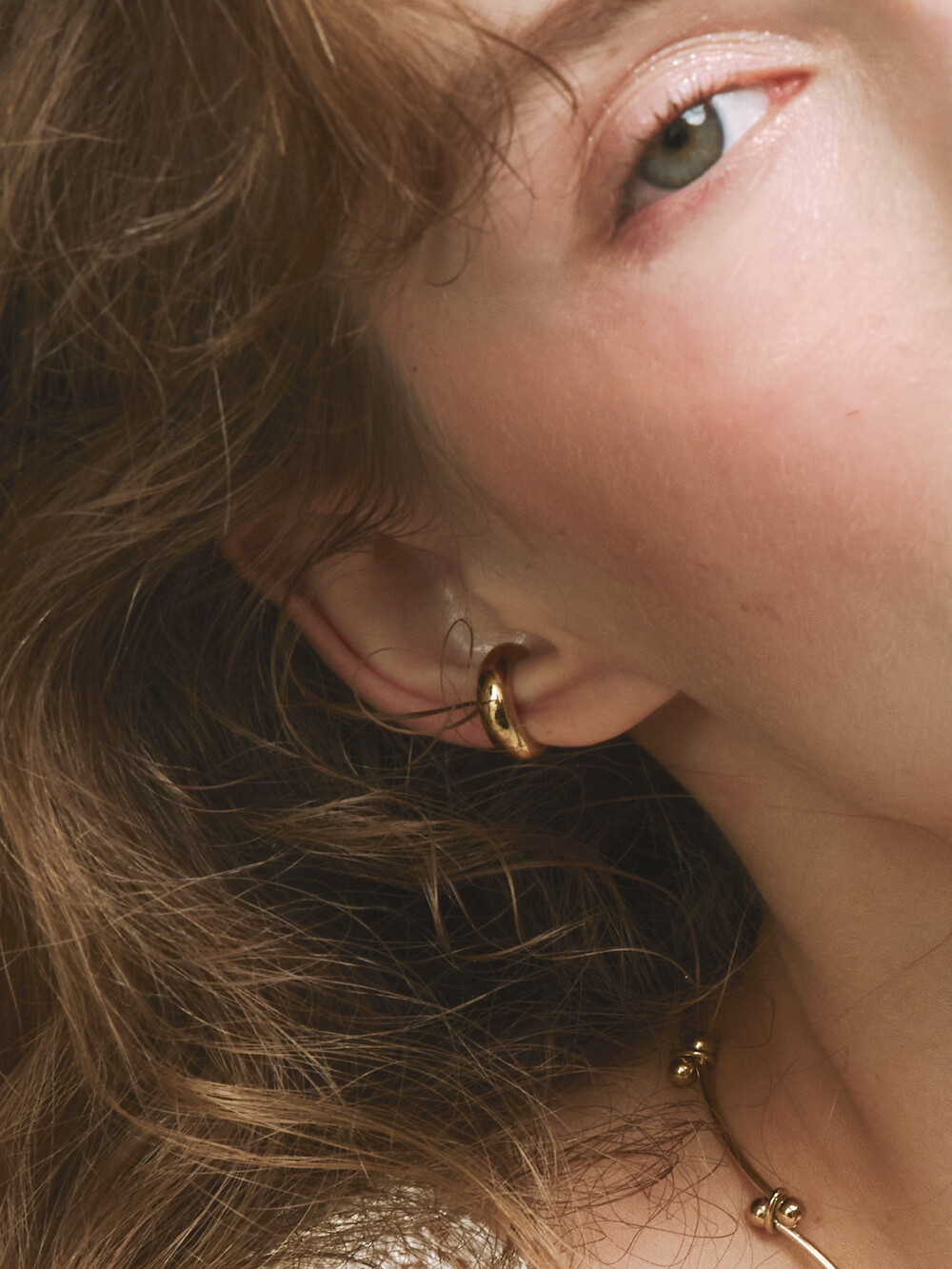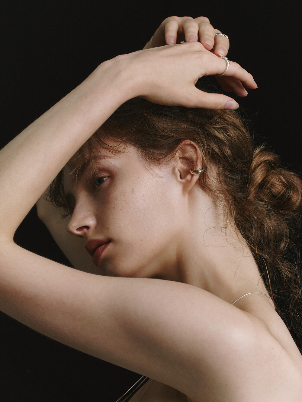 열네 번째로 선보일 조각은 심플한 형태이지만 착용하였을 때 독특한 존재감으로 특별함을 더해주는 이어커프입니다.